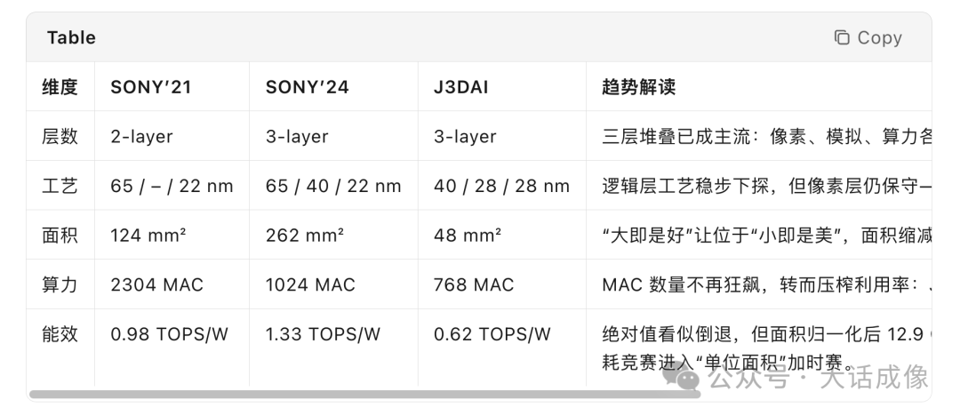从 SONY’21 的“证明可行”,到 SONY’24 的“放大算力”,再到 J3DAI 的“缩到极致”,AI sensor 的三年进化呈现出“面积更小、集成更紧、能效更精”的明确方向。然而,真正的大规模落地,还需等待工艺、算法与生态的三重拐点。J3DAI 像一块路标,标记了当下技术能到的最远风景,也提醒我们:革命尚未成功,边缘视觉仍在路上。