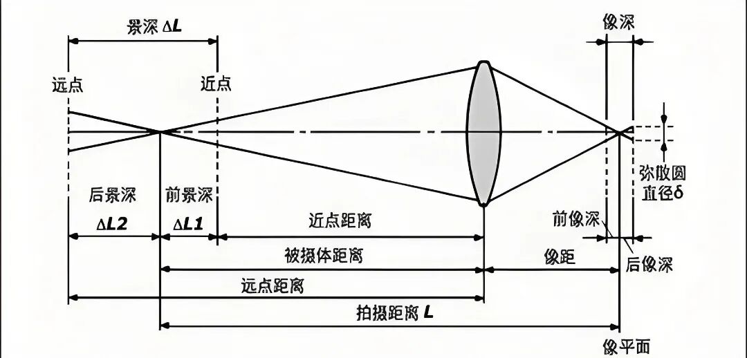 弥散圆:当点光源没有在焦平面上成像时,在传感器上会形成一个模糊的小圆点。当这个圆点足够小,人眼仍觉得它是清晰的点,它就还在景深范围内。容许弥散圆直径是计算景深的基础之一。